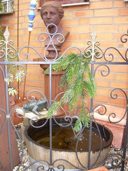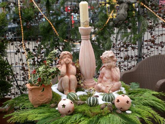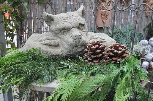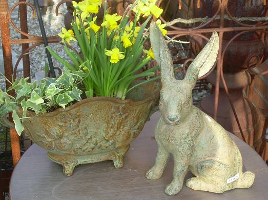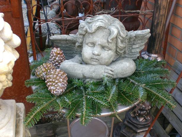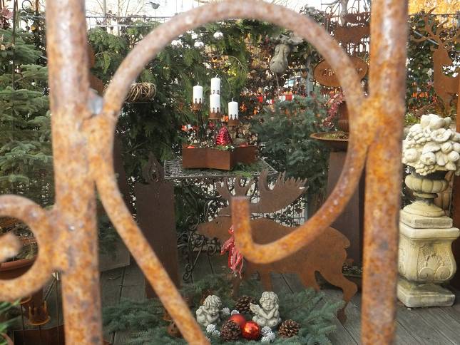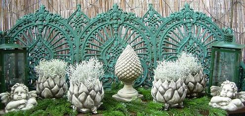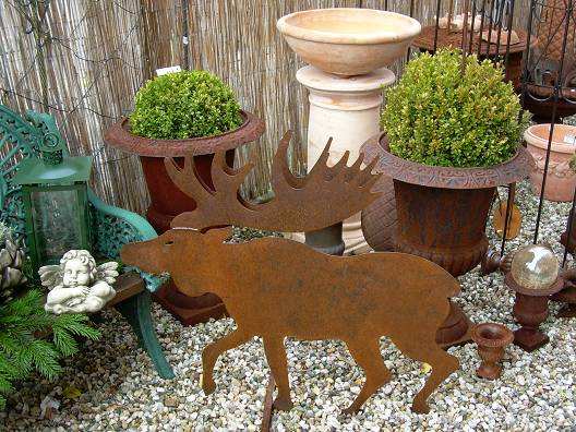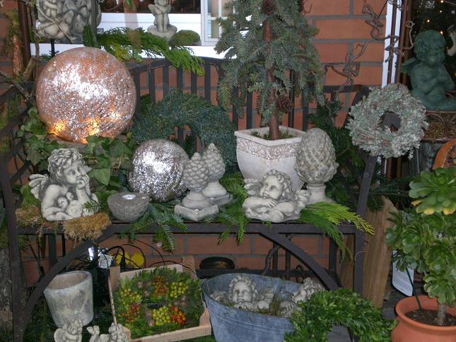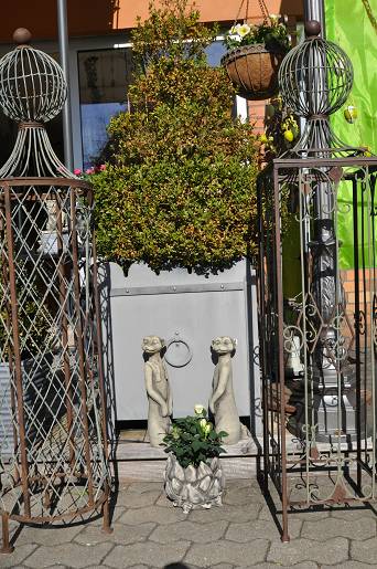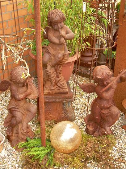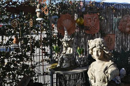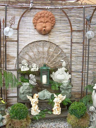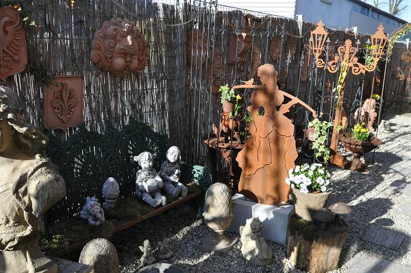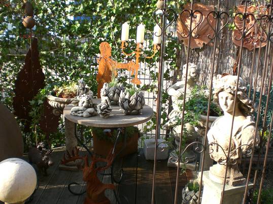 Terracotta, Töpfe und Figuren aus Steinguss und Gusseisen, Zaunelemente,