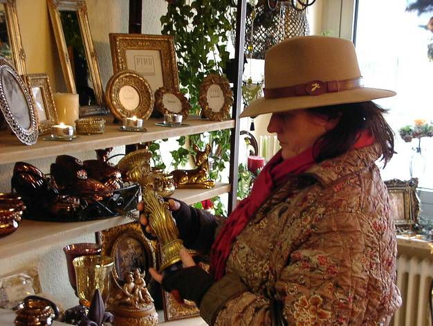 Im Ladengeschäft, dass durch seine alte Holzbalkendecke eine gemütliche und